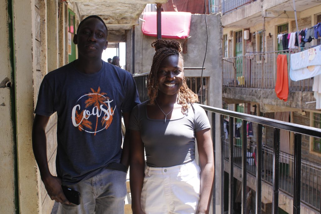 Emmanuel (left) our volunteer who teachers art and Lynnah (right) our volunteer for academics posing for a photo.